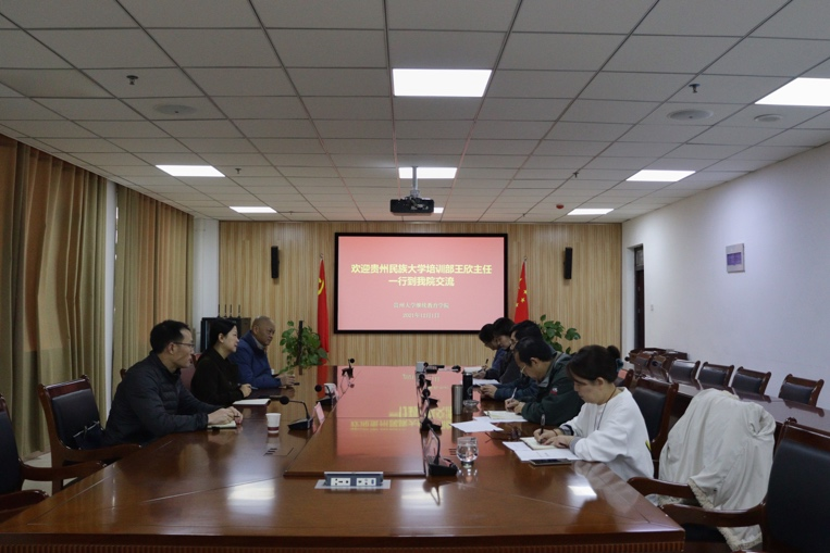会上,王欣介绍到访目的,贵州民族大学培训部成立于2021年,是在前滕博会9885官网的基础上组建的。按照学校关于继续教育“一转三化”的总体部署,发挥高校服务社会的职能,大力发展培训工作。此行前来交流座谈,主要是取经学习,借鉴交流。